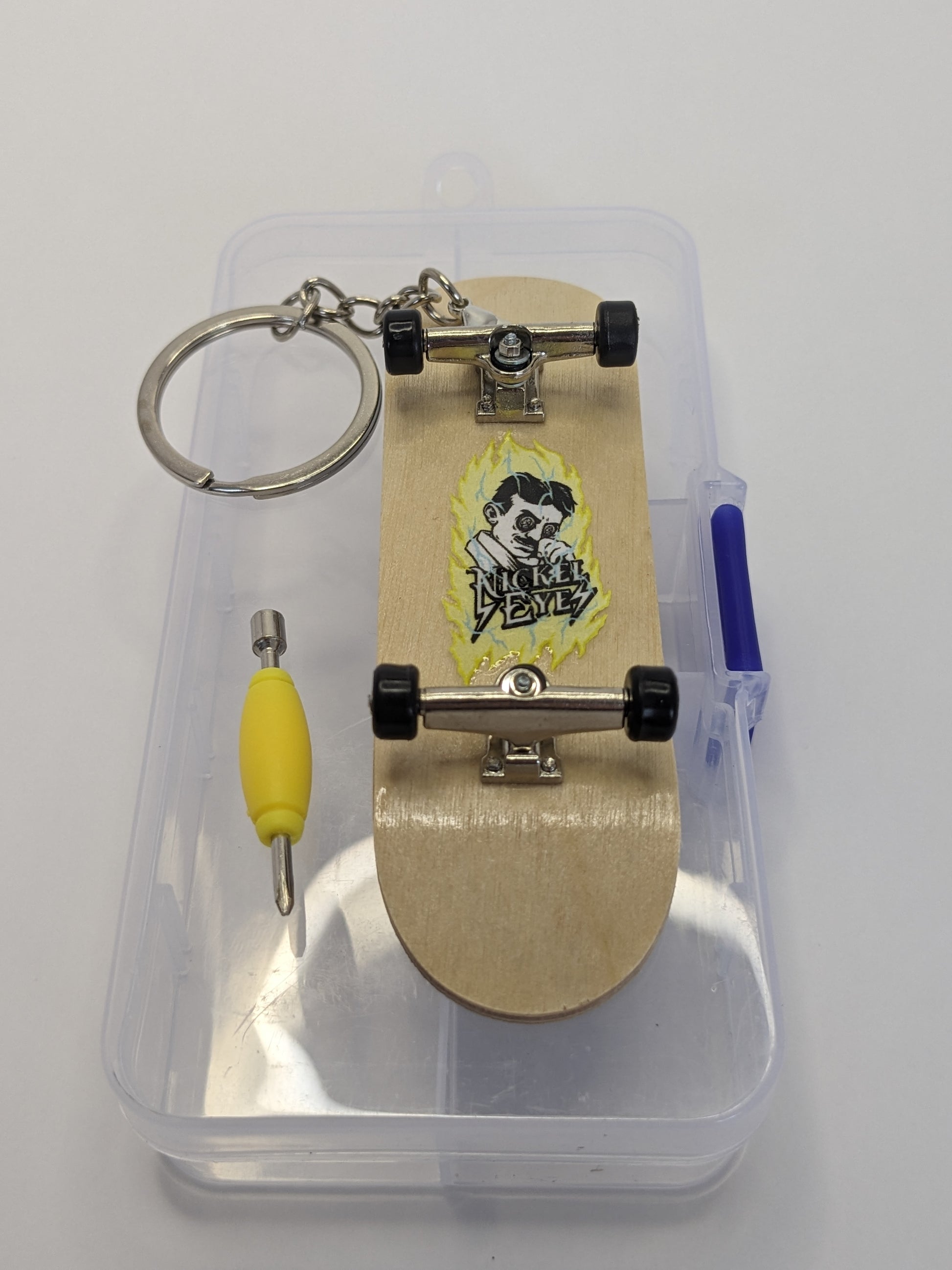 Introducing our Finger Board Keychain! Made with real wood and soft foam grip tape, you can take this keychain wherever you go. Dominate challengers at a moments notice while showing off your skills & earning mad street cred. A must-have for any finger board enthusiast!