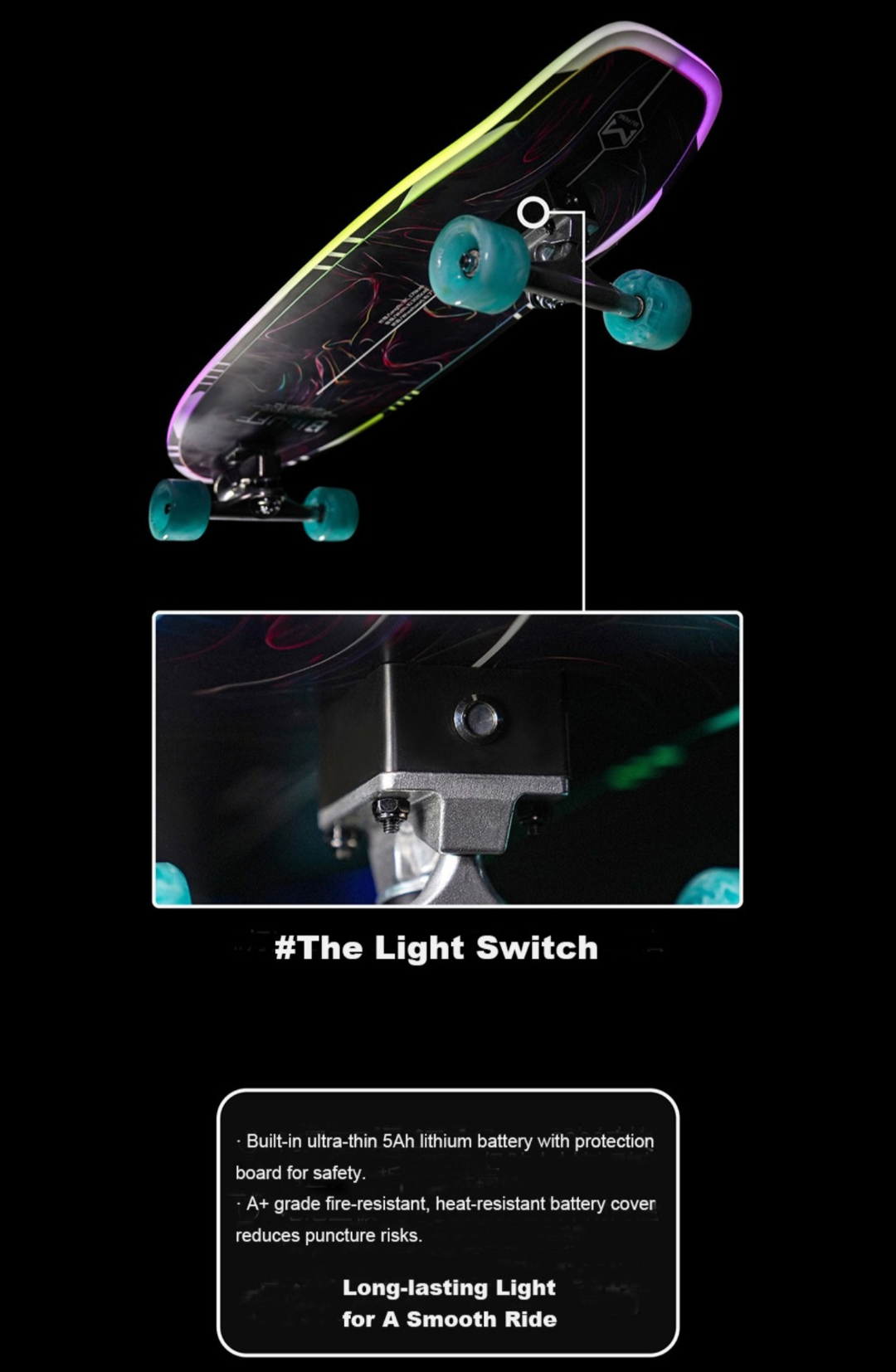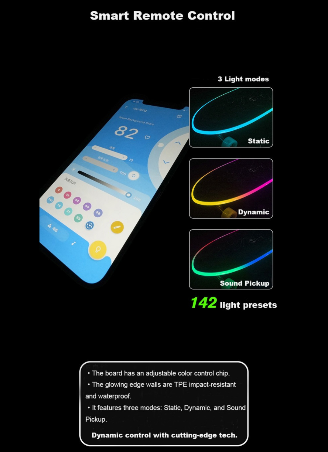 Featuring All New Dynamic LED lighting built into the deck! Simply download the controller app to any smart phone and enjoy the creative freedom to customize colors, patterns, and more!