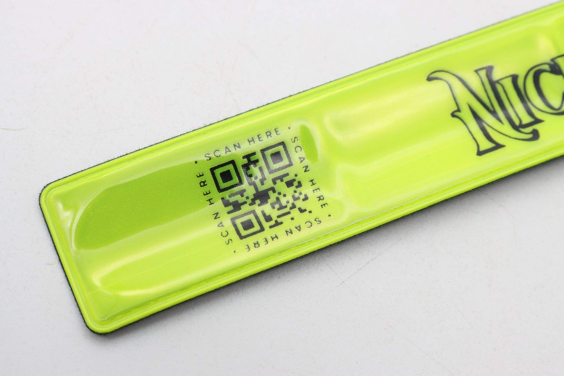Enhance visibility and elevate style with the Nickeleyes Reflective Slap Bracelet. Designed with the highest quality materials, this bracelet provides 360 degrees of reflectivity for maximum safety during any activity.